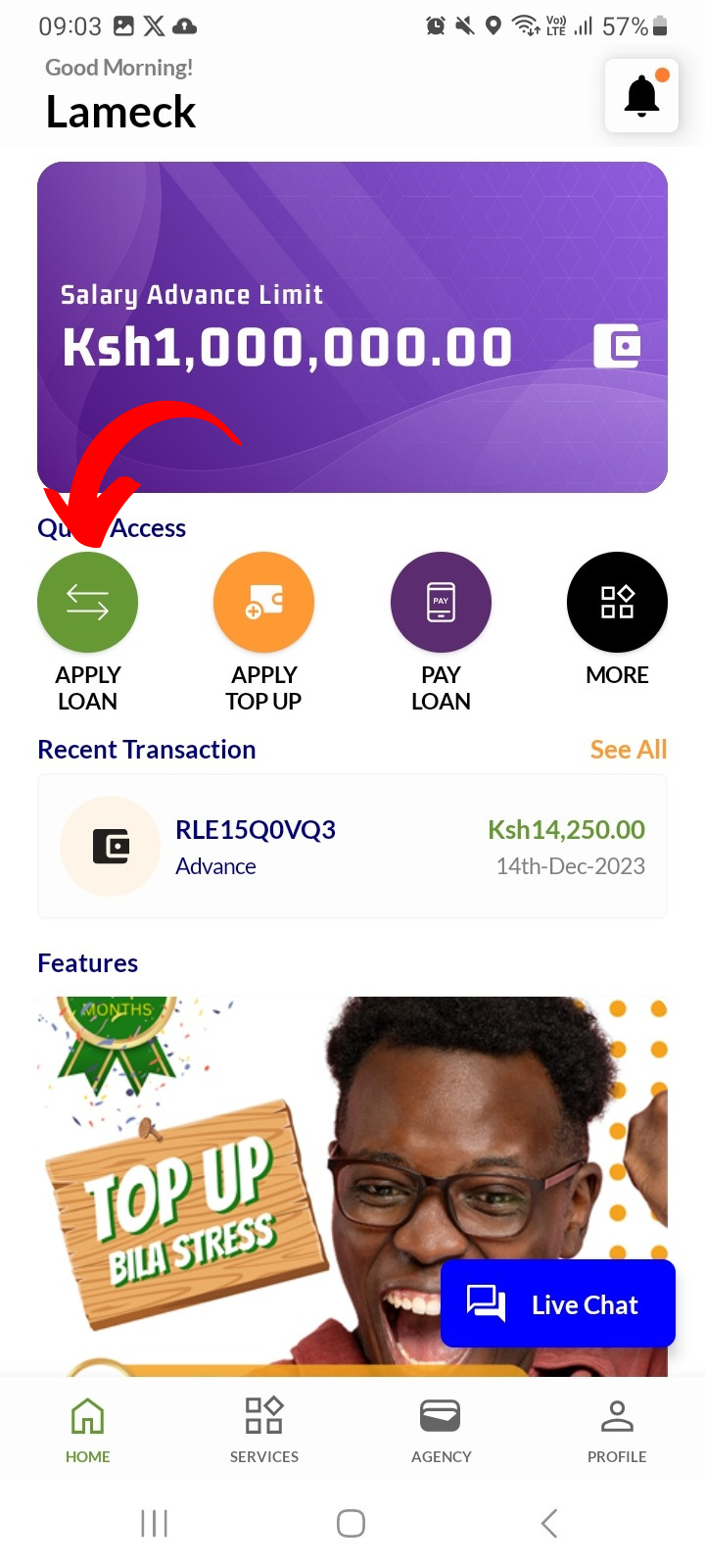 5. Access “Apply for Advance”: Once logged in, navigate to the “Apply for Advance” option within the app.